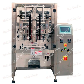 Автоматическая вертикальная упаковочная машина MAG-420 упаковывает любую продукцию в зависимости от установленного дозатора, в пределах 2000 мл.Подходит для комплектации с мультиголовочным весовым дозатором, полуавтоматической установкой для загрузки сырья, шнековым дозатором для порошковой продукции, объёмным дозатором, жидкостным наполняющим дозатором.Особенности структуры и свойства:1. При низкой стоимости оборудования его высокая эффективность дает возможность быстрой окупаемости производства. 2. На машине установлен PLC контроллер управления, датчик фотометки, что позволяет использовать упаковочный материал с рисунком.  3. Имеется сервоприводная система размотки пленки.4. …