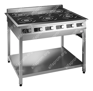 Индукционная плита EKSI ИПЭ-6 Б 3,5 предназначена для приготовления широкого спектра блюд на предприятиях общественного питания и торговли. Модель оснащена расположенной под углом панелью управления с нависающим козырьком для защиты от пищевых загрязнений. Корпус выполнен из нержавеющей стали AISI 430, ножки - из нержавеющей трубы AISI 430 40x40 мм, рабочая поверхность - из стеклокерамики.